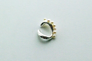 いくつかの淡水パールが埋め込まれたイヤーカフは印象的な耳周りに。