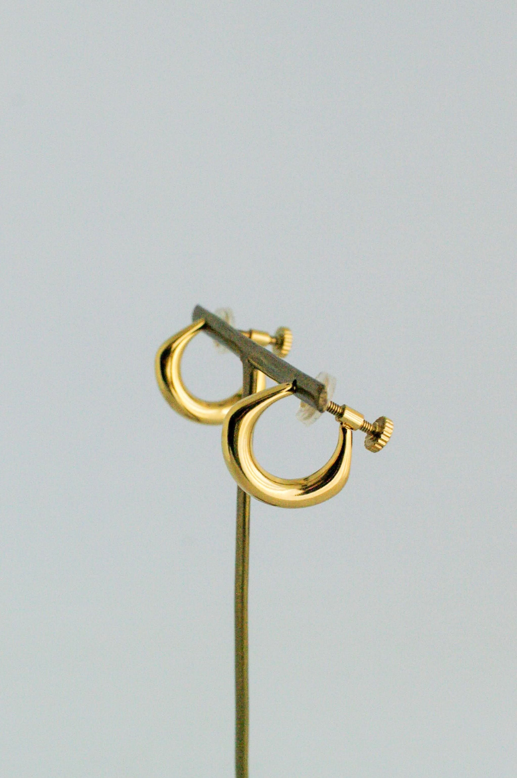 スクリュータイプのフープイヤリングは厚みがあり、シャープで洗練された印象を与えます。少し鋭角なデザインが特徴で、どんなスタイルにも合わせやすく、シンプルながらも存在感のあるアクセサリーです。