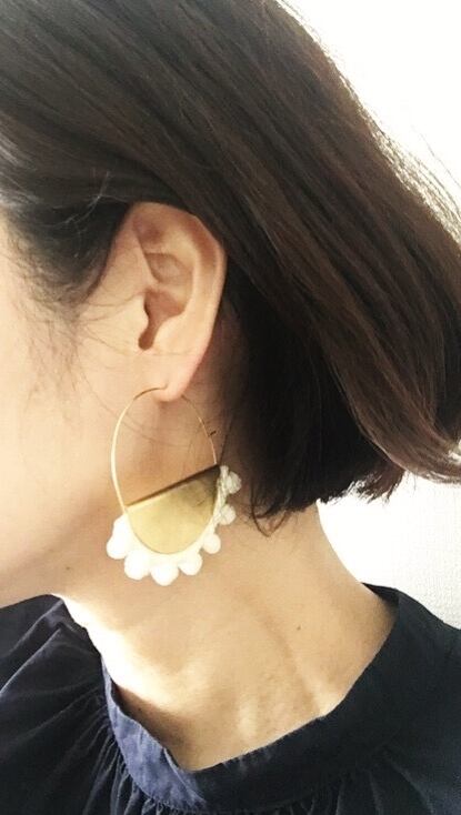 大きなフープにスカラップがなんともキュートなサンディーヒュンのおお振りピアス。シンプルなニットやTシャツなどに、1点でコーディネートのポイントになる映えピアスです。