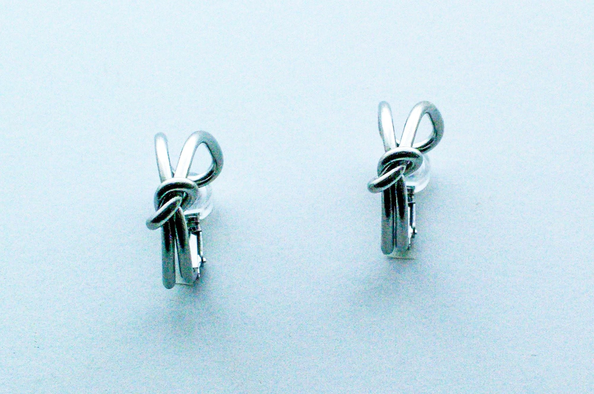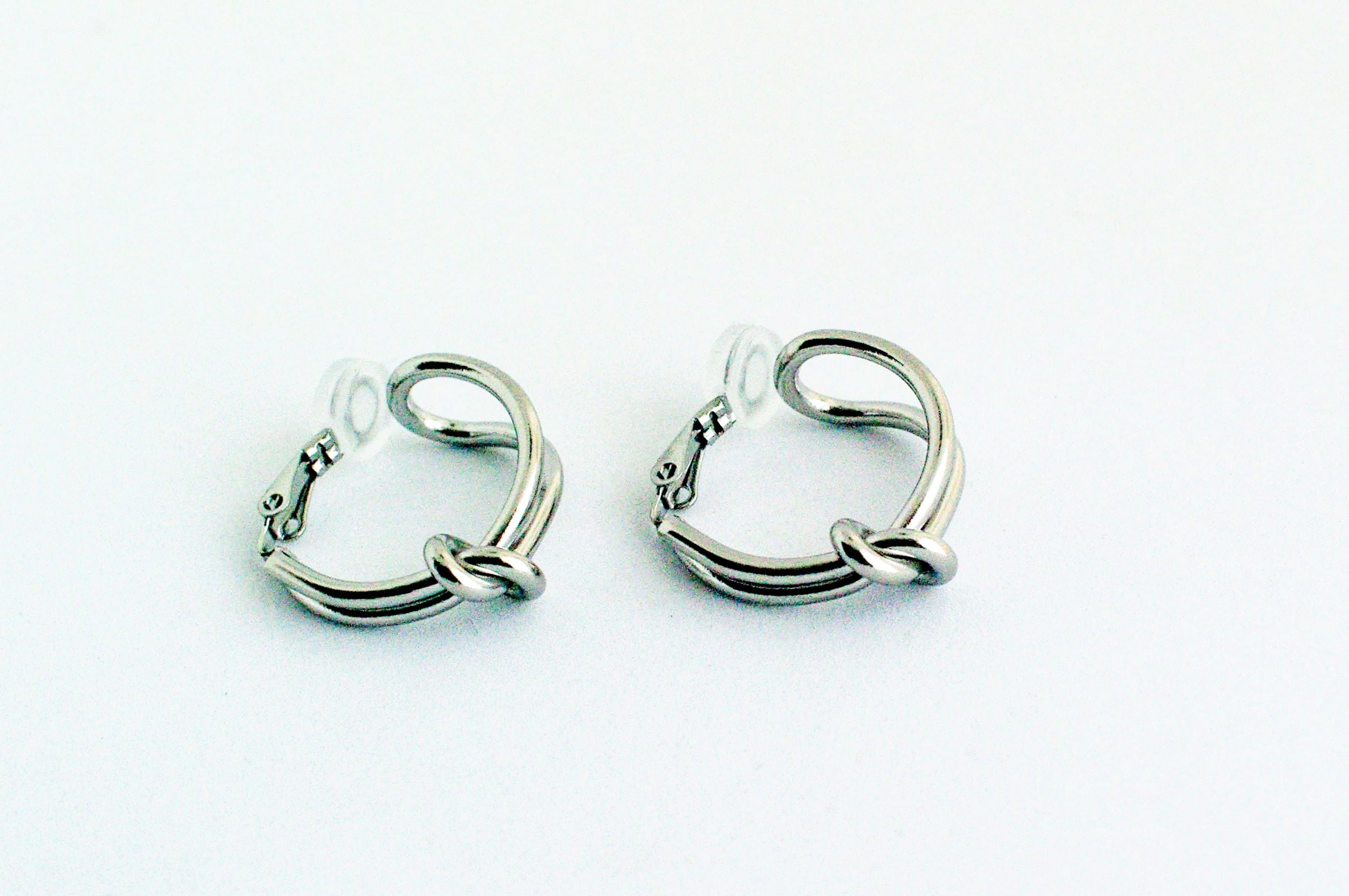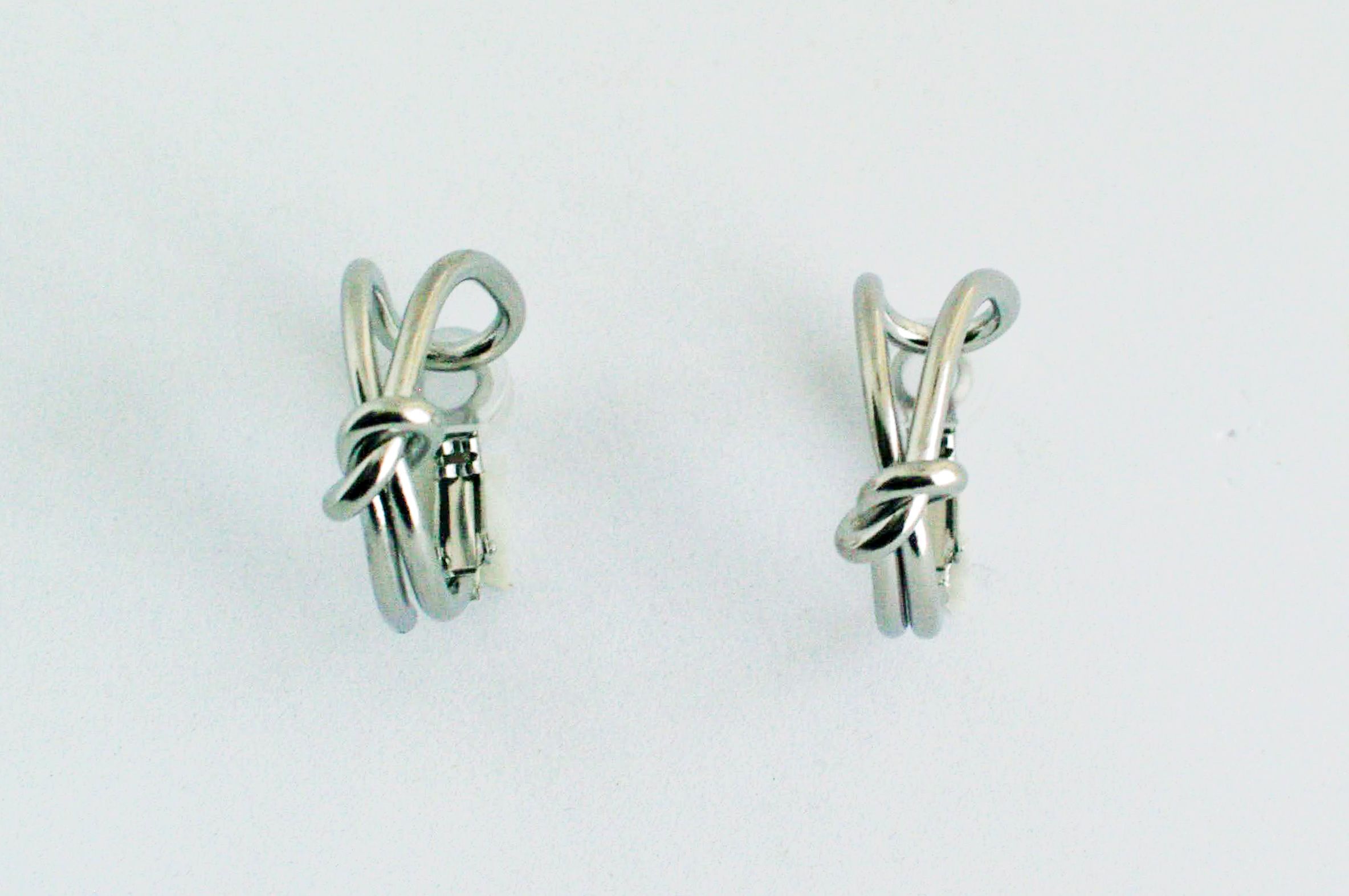 フープのセンターに立体的なノット(結び目)のデザインが施されたイヤリング。シルバーカラーがシャープさと洗練された印象を与えてくれます。シンプルなコーディネートのアクセントにも。