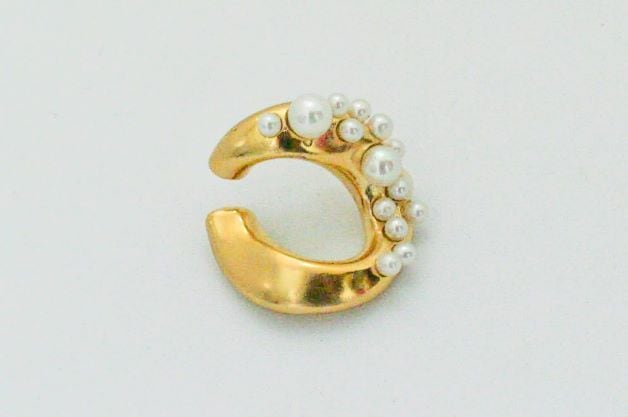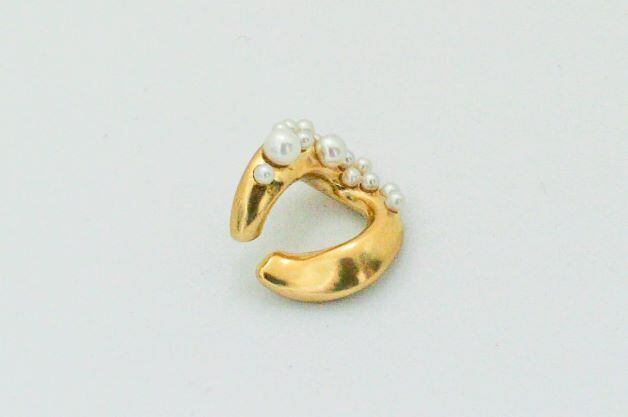 いくつかの淡水パールが埋め込まれたイヤーカフはボリュームもあり、存在感を放ちます。